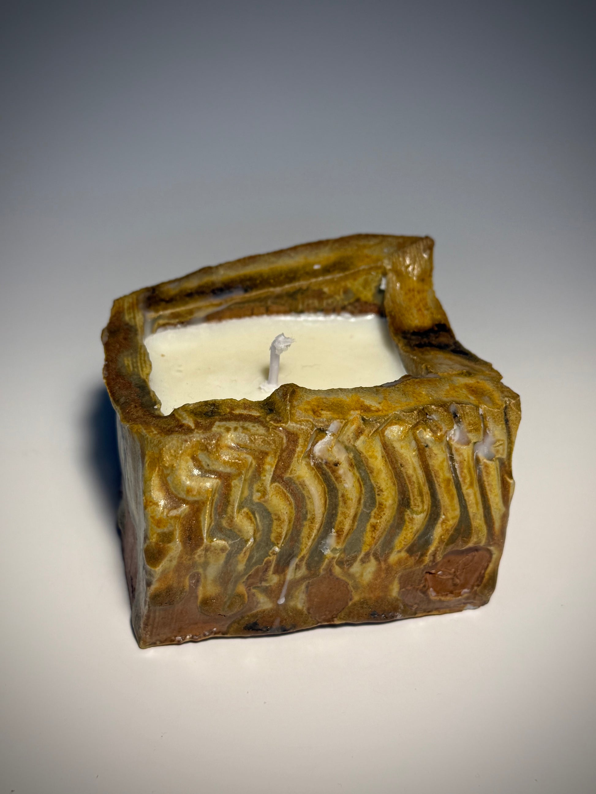 Vetiver scented beeswax candle in a wire cut stoneware form. Shipping included.